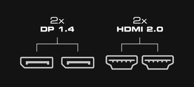 - 2x DisplayPort 1.4 med en opdateringshastighed på op til 180Hz,