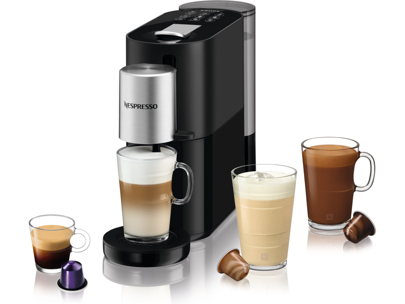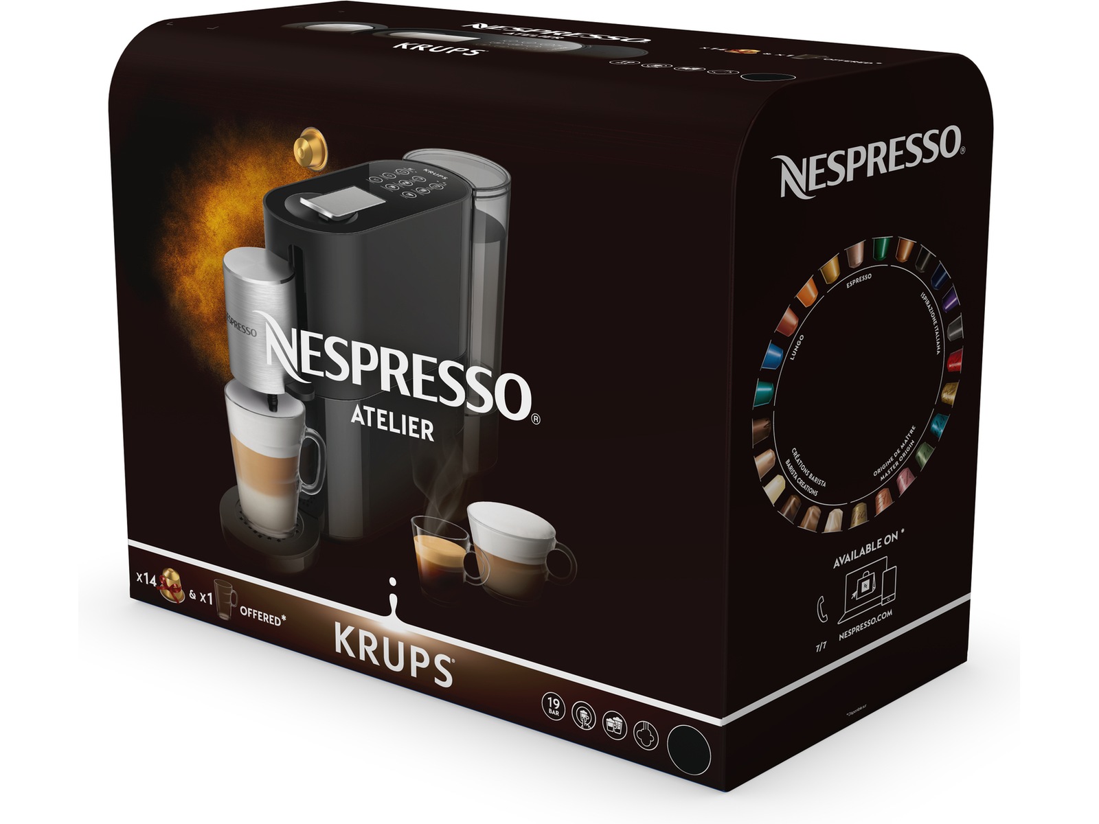 Med Nespresso Atelier er du håndværkeren bag dine egne kaffe- og mælkeopskrifter, fra Cappuccino til Flat White, herunder Latte Macchiato eller endda Mokka med chokoladestykker. Maskinen er dit personlige arbejdsbord, med en teknologi, der giver dig mulighed for at skumme enhver form for mælk og plantebaserede alternativer, såsom mandel- eller sojadrikke ... alt sammen direkte i din kop. Og på varme sommerdage kan du køle af med isdrikke takket være den kolde skumfunktion. Kaffe, præcist som du ønsker den.