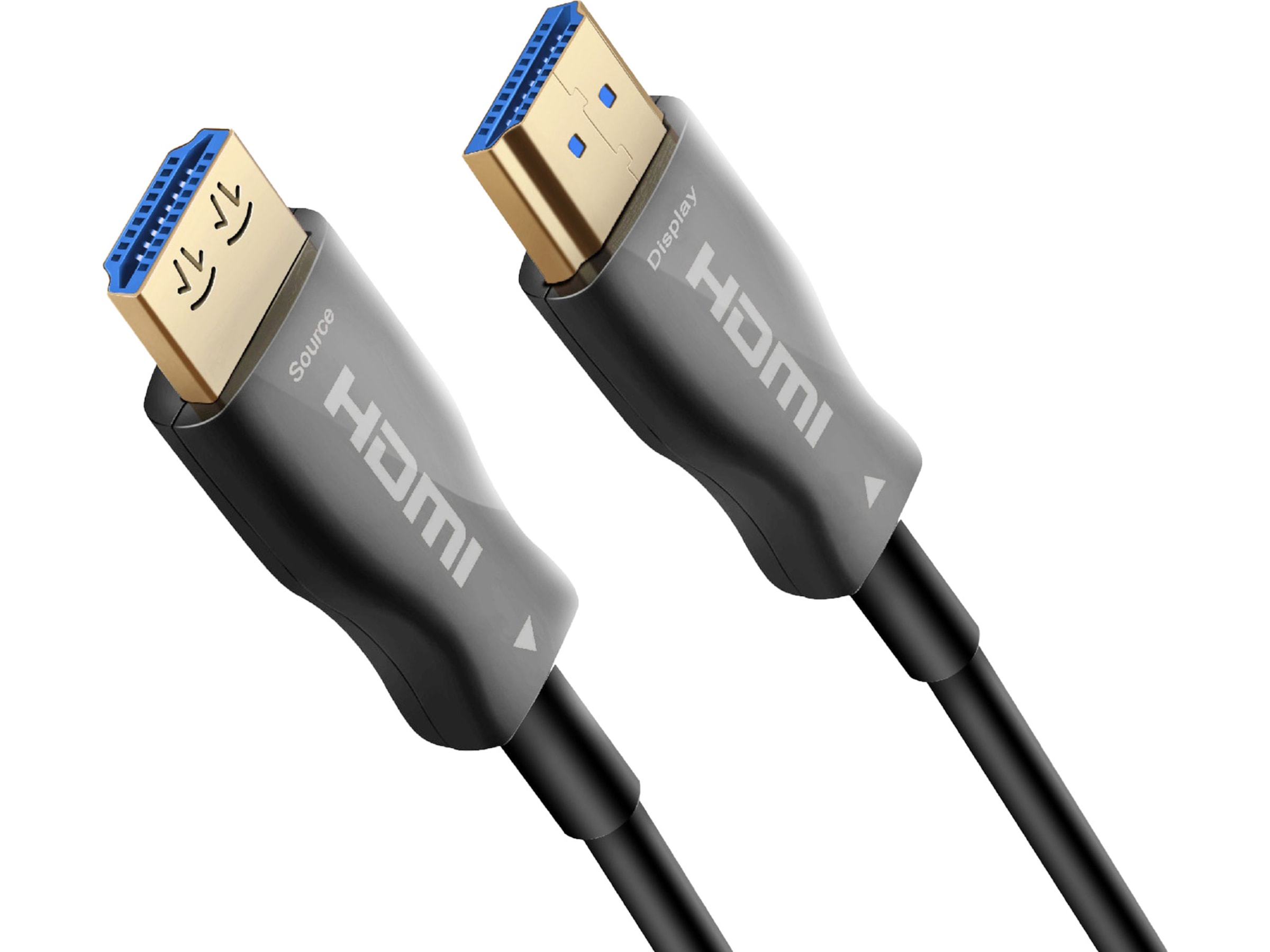 Iiglo AOC HDMI hybridkabel er retningsbestemt. Derfor er det helt essentielt, at kablet er tilsluttet i den rigtige retning, for at du kan få et billede. Sæt stikket mærket "Display" i dit tv, projektor eller skærm, og stikket mærket "Source" til din pc, Apple TV osv.