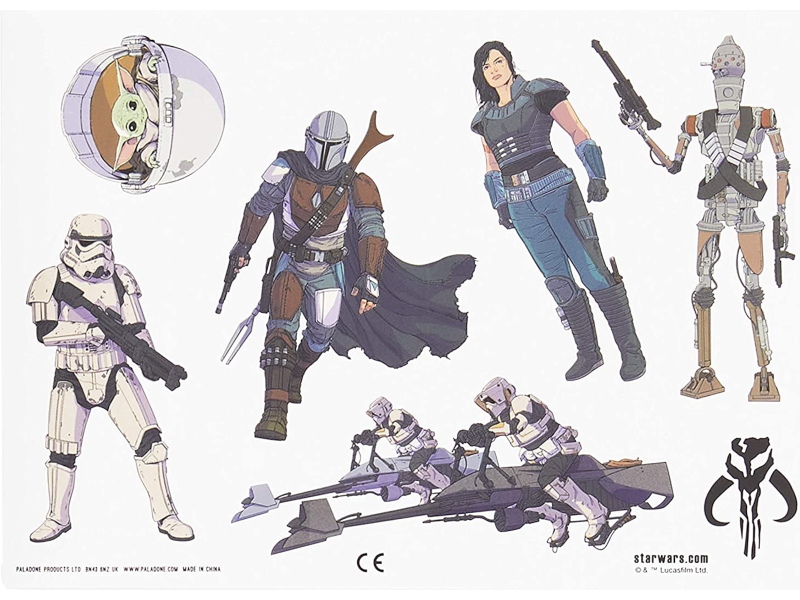 - Stor gave: Leveres i en kuvert i fuld farve. Denne pakke med klistermærker gør den til en særlig gave til enhver Star Wars- eller The Mandalorian-fan, plus enhver samler af officielle Star Wars-relaterede genstande vil byde dem velkommen i deres samling.