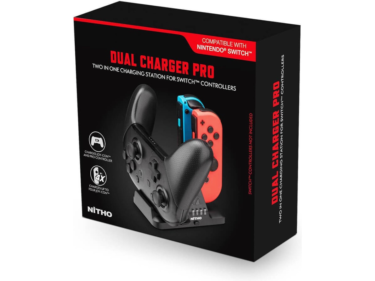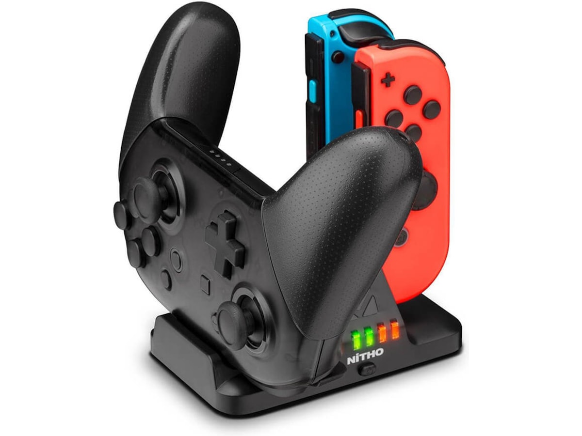 - Oplader og hoster to Joy-Con-controllere og en Pro-controller