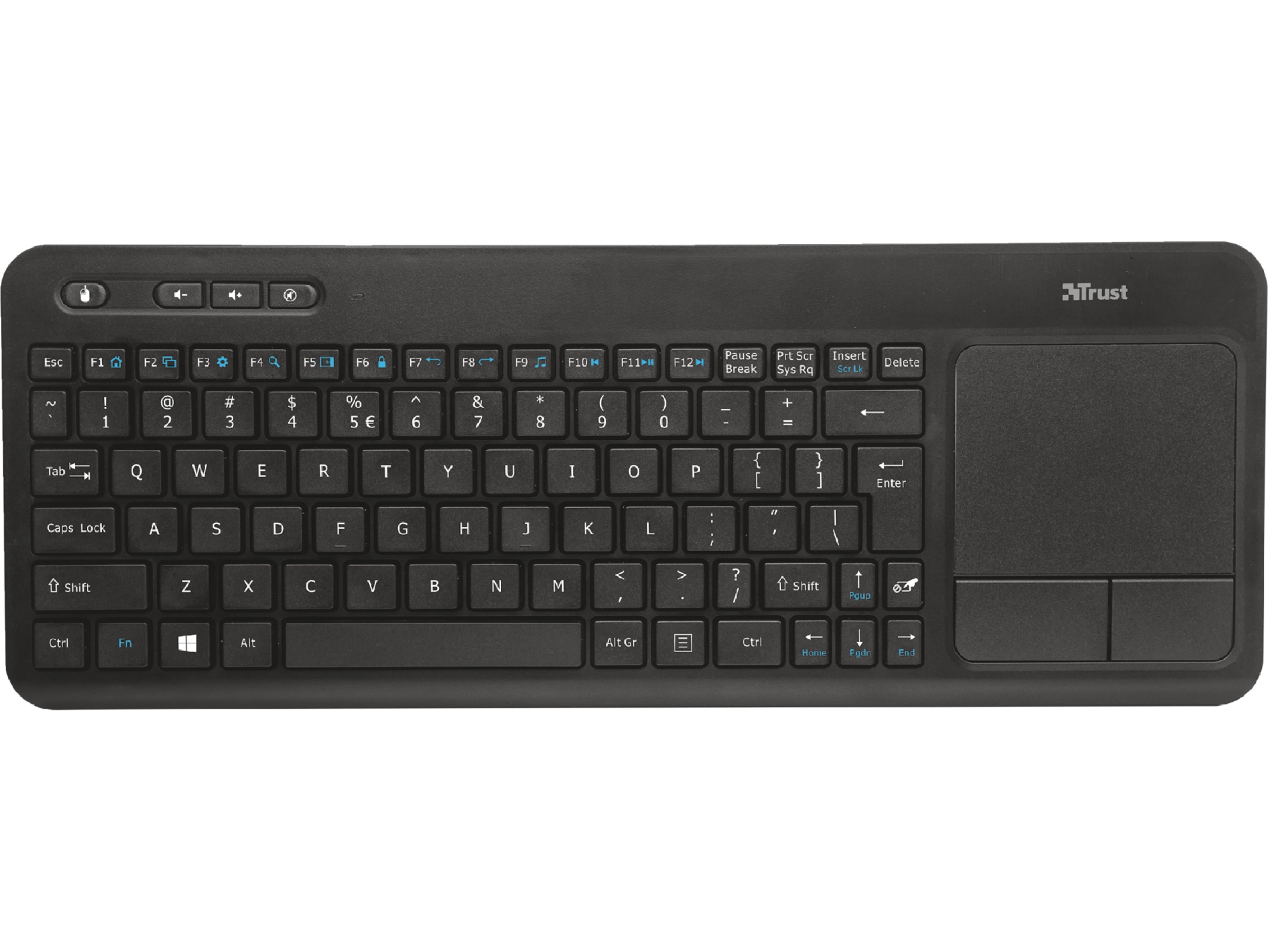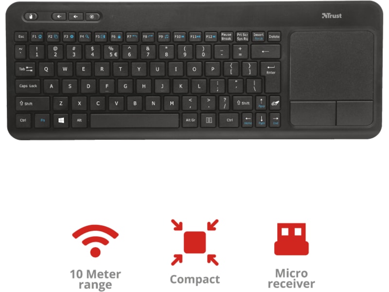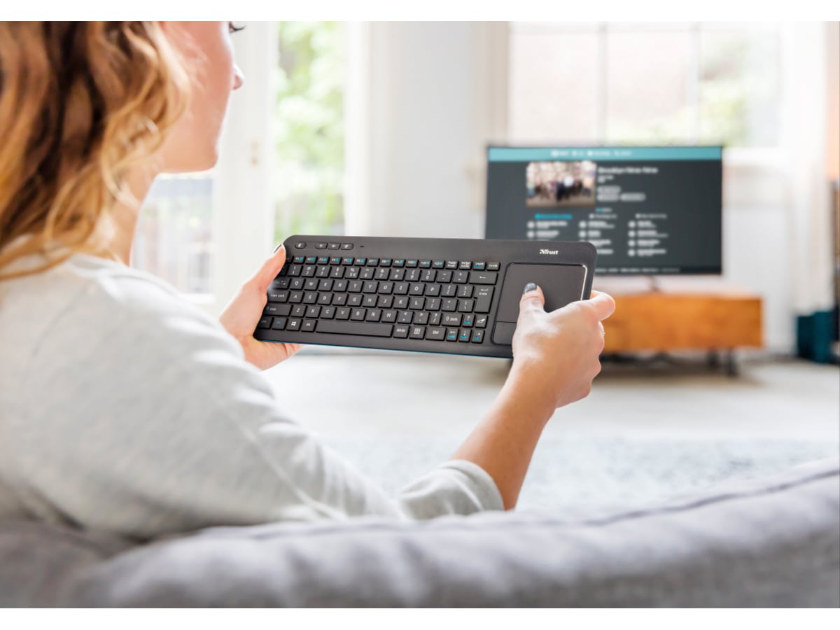 - Multimedietastatur med integreret XL-touchpad til optimal kontrol af dit Smart TV, laptop, PC eller spilkonsol