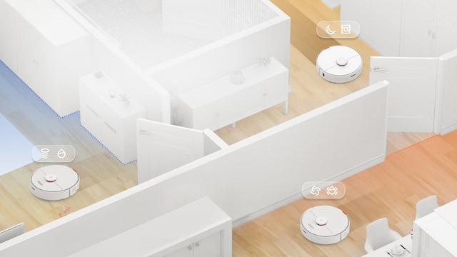 S7 tilbyder fuld kontrol med endnu mere avanceret kortlægning med forbudte zoner, zoner, som ikke skal vaskes, og usynlige virtuelle vægge. Du kan brugertilpasse sugestyrke, sonisk vibrationsstyrke, vandstrømning (herunder en indstilling til ekstra-intens gulvvask til vanskelige områder) og endnu mere for hvert rum i dit hus.