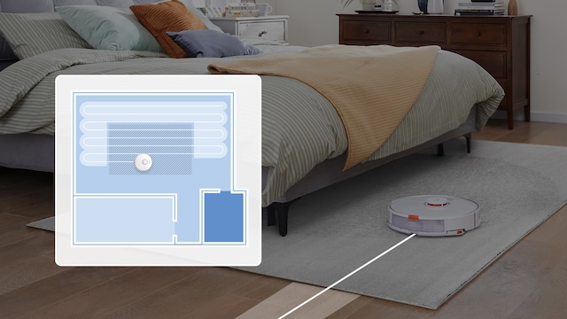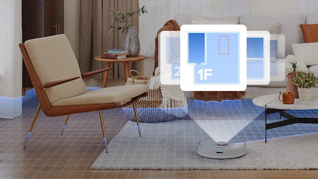 Med de ultrasoniske sensorer identificerer S7 automatisk og præcist tæppebelagte overflader, og informationen bliver lagret med den intelligente kortlægningsfunktion, så det bliver endnu nemmere at kontrollere præcist, hvordan den håndterer forskellige overflader.