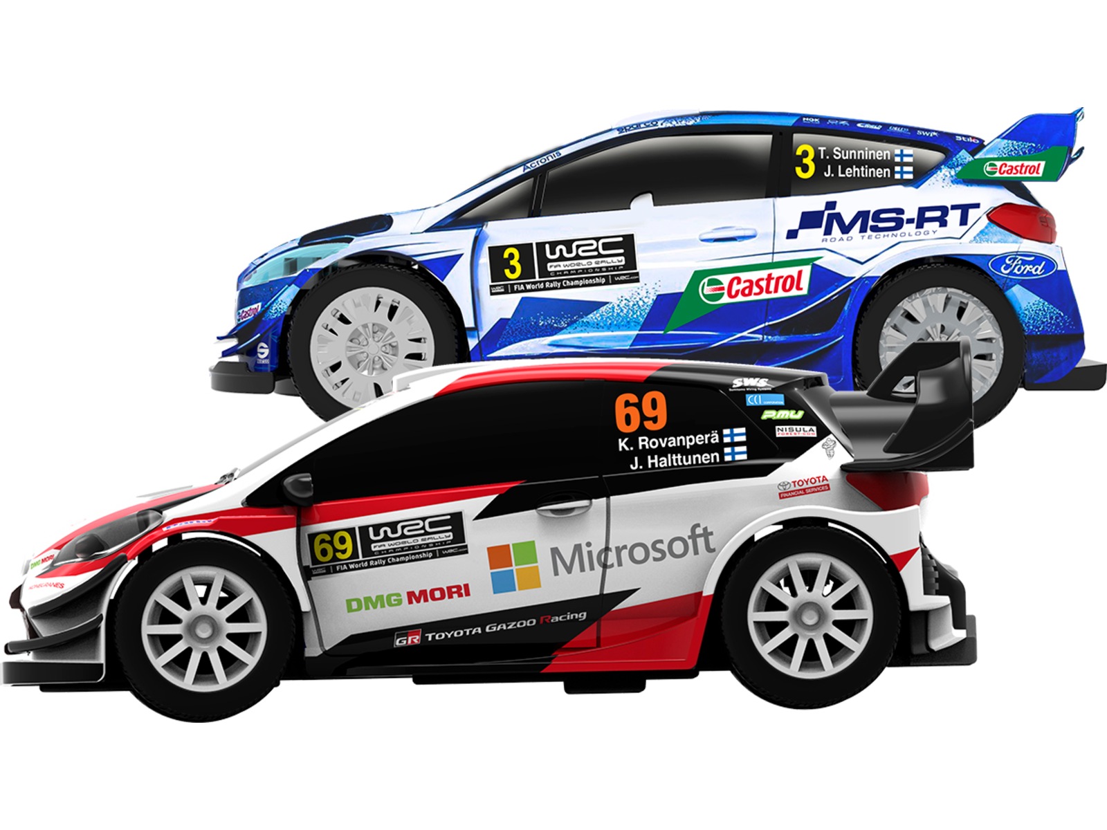 De reducerede dimensioner af disse baner og biler gør kørslen og installationen derhjemme nemmere, hvilket gør det til det perfekte springbræt for de yngste piloter, der begynder at nyde WRC-løbene. Kredsløbenes fjernbetjeninger er tilpasset børnenes ergonomi, og de inkluderer en TURBO-funktion, der giver en kontrolleret hastighedsforøgelse for mere sjov.
