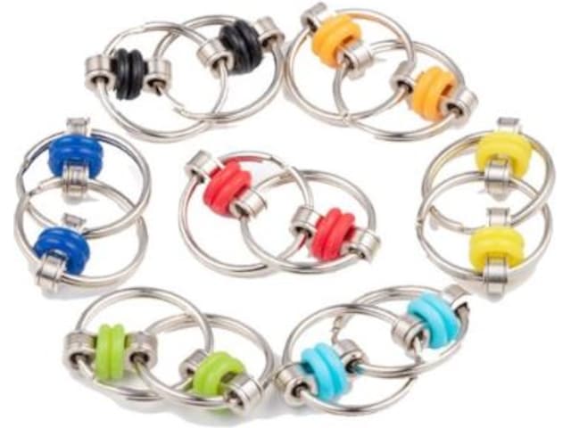 Perfekt til afstressning. Fremstillet i robust rustfrit stål med farvede gummidele, der føles mærkelige. Ringene er kompakte og derfor nemme at have med på farten, i skolen eller på arbejdet.