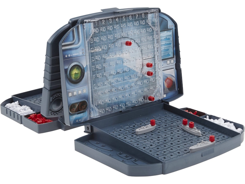 Med praktiske bærbare kamp-æsker og realistisk udseende flådefartøjer placerer Battleship-spillet spillerne lige midt i handlingen. Spillerne har kommandoen over en stærk flåde, der inkluderer et hangarskib, en destroyer, en ubåd, en patruljebåd og et slagskib. Hver spiller annoncerer koordinaterne for hvert slag og ser, om det rammer.