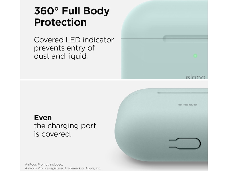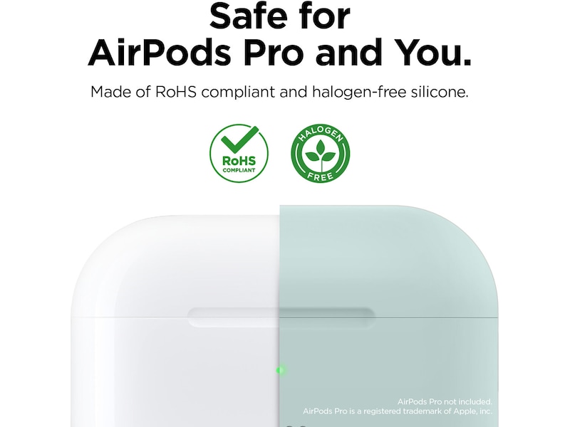 BESKYTTELSE Etuiet er fremstillet af førsteklasses silikonemateriale for at beskytte dit AirPods Pro etui mod ridser og eksterne påvirkninger. Støvhætte beskytter AirPods Pros opladningsport mod støv og væsker.