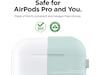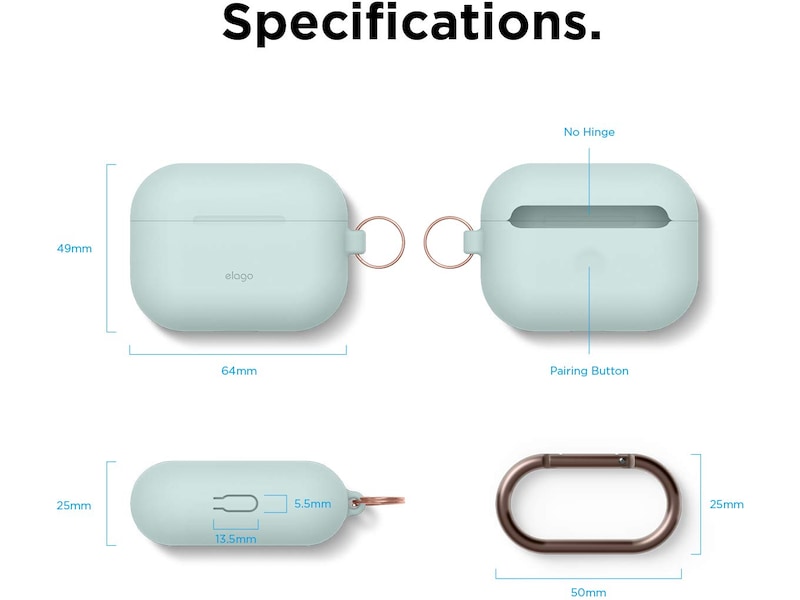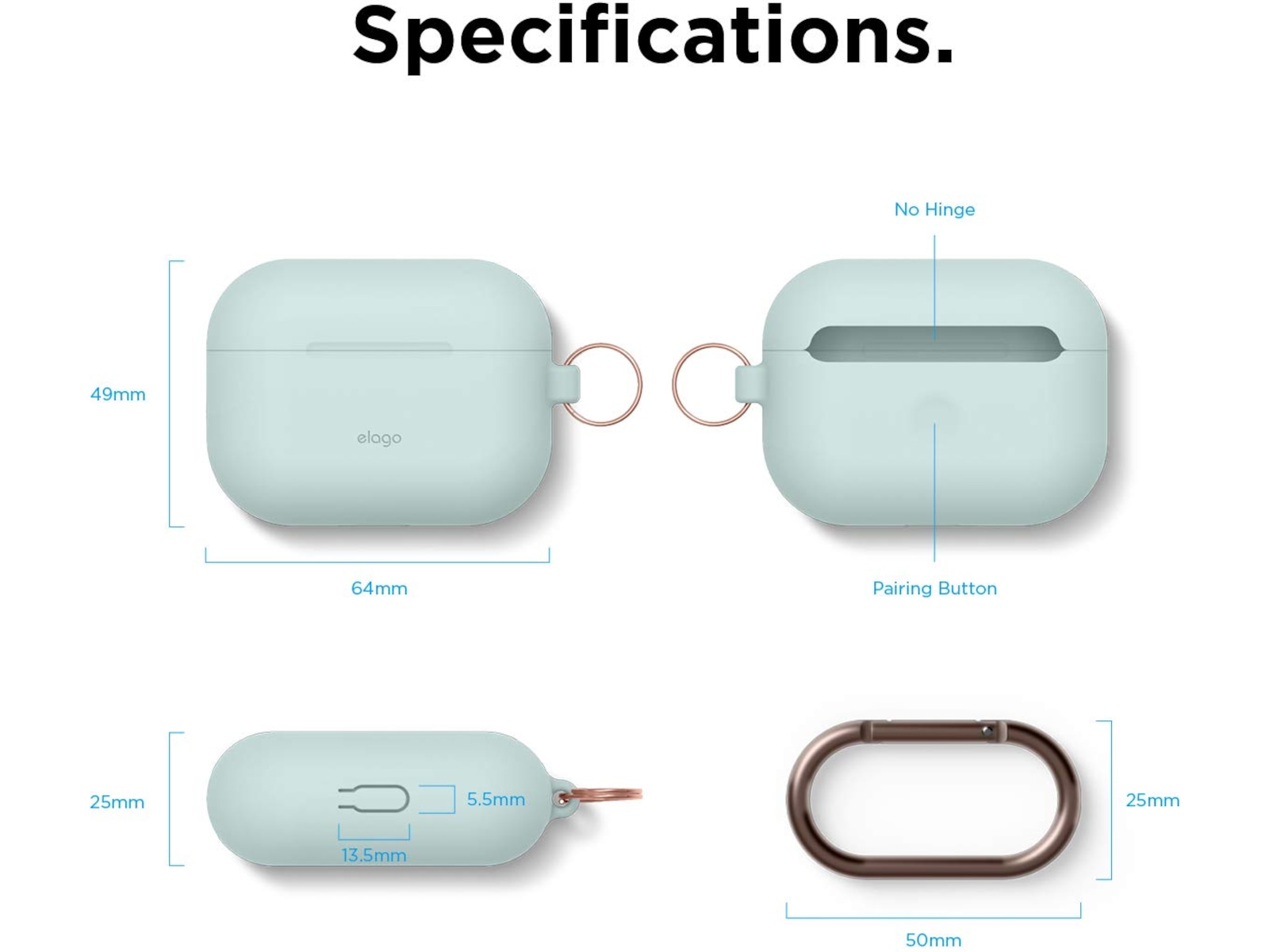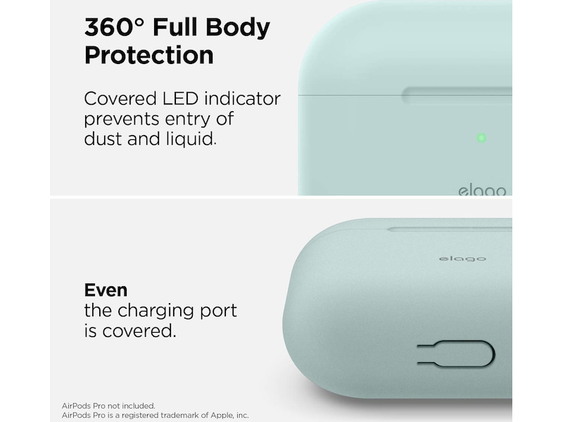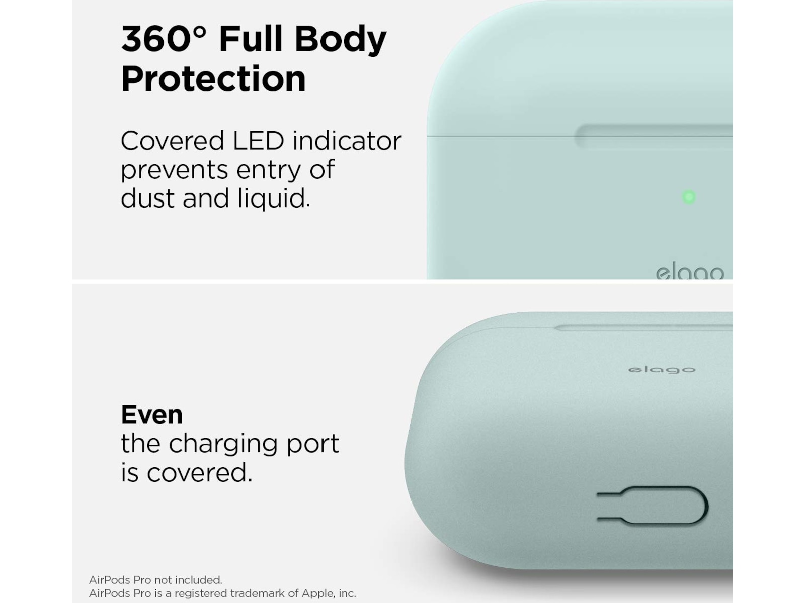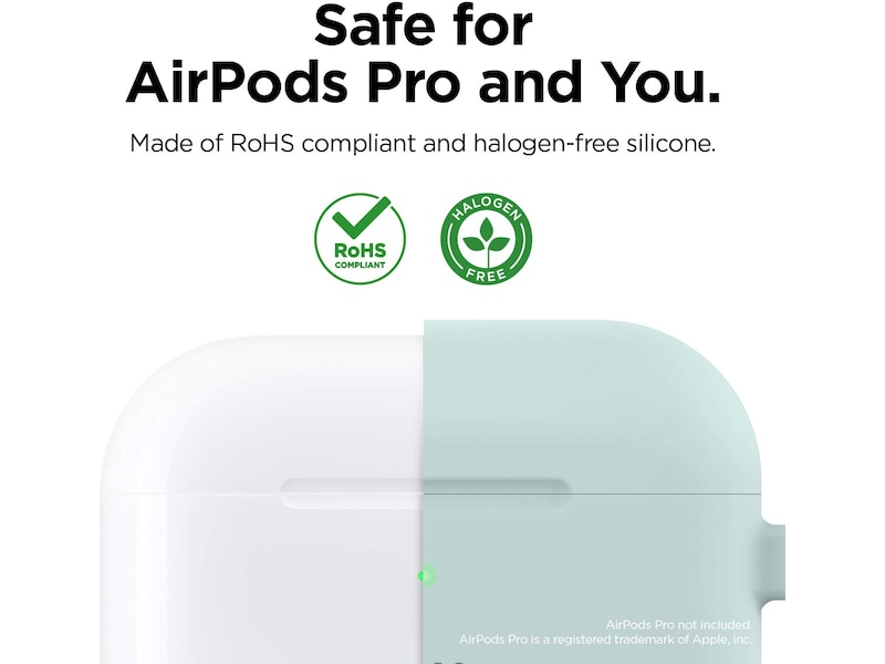 BESKYTTELSE Etuiet er fremstillet af førsteklasses silikonemateriale for at beskytte dit AirPods Pro etui mod ridser og eksterne påvirkninger. Støvhætte beskytter AirPod Pros opladningsport mod støv og væsker. En karabinhage er inkluderet, så du sikkert kan fastgøre dit AirPods etui til bæretasker, kufferter, bukser, osv