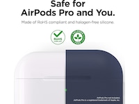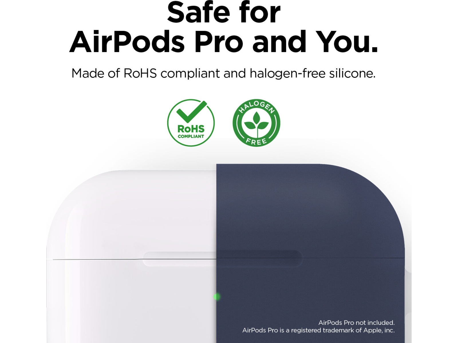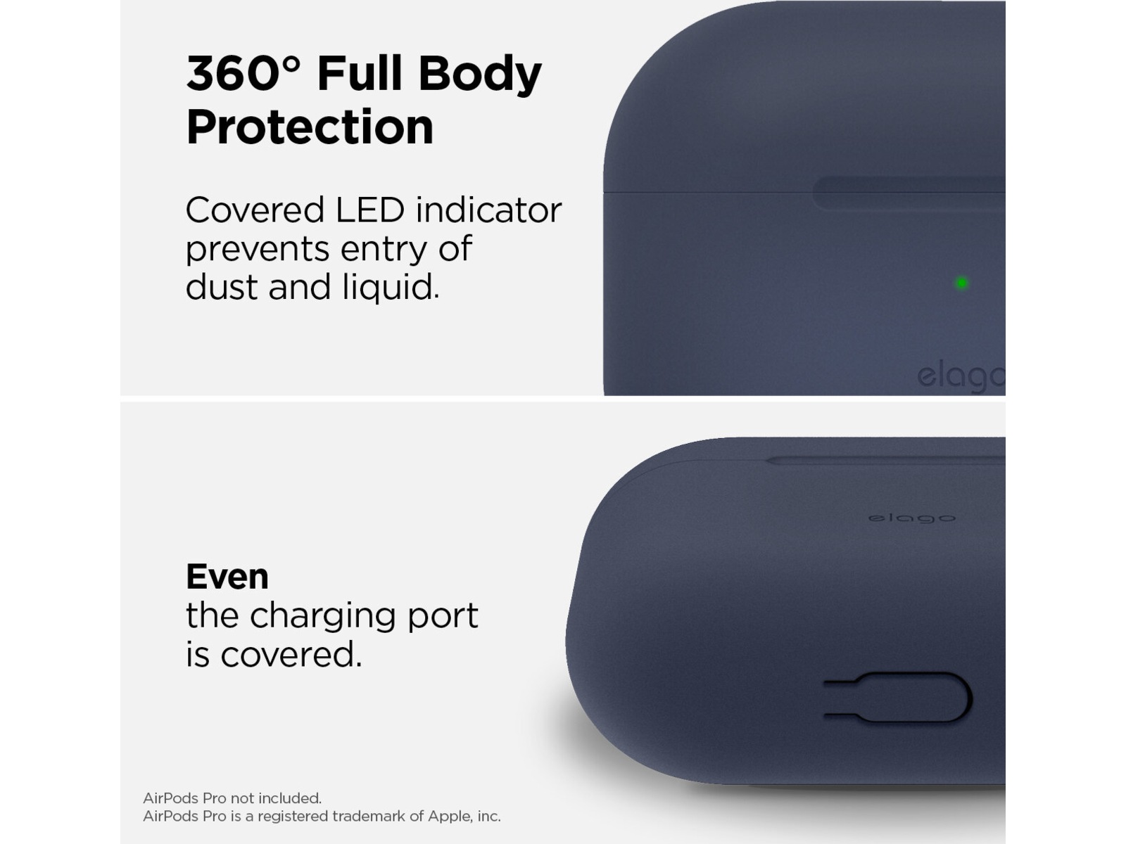 BESKYTTELSE Etuiet er fremstillet af førsteklasses silikonemateriale for at beskytte dit AirPods Pro etui mod ridser og eksterne påvirkninger. Støvhætte beskytter AirPods Pros opladningsport mod støv og væsker.