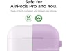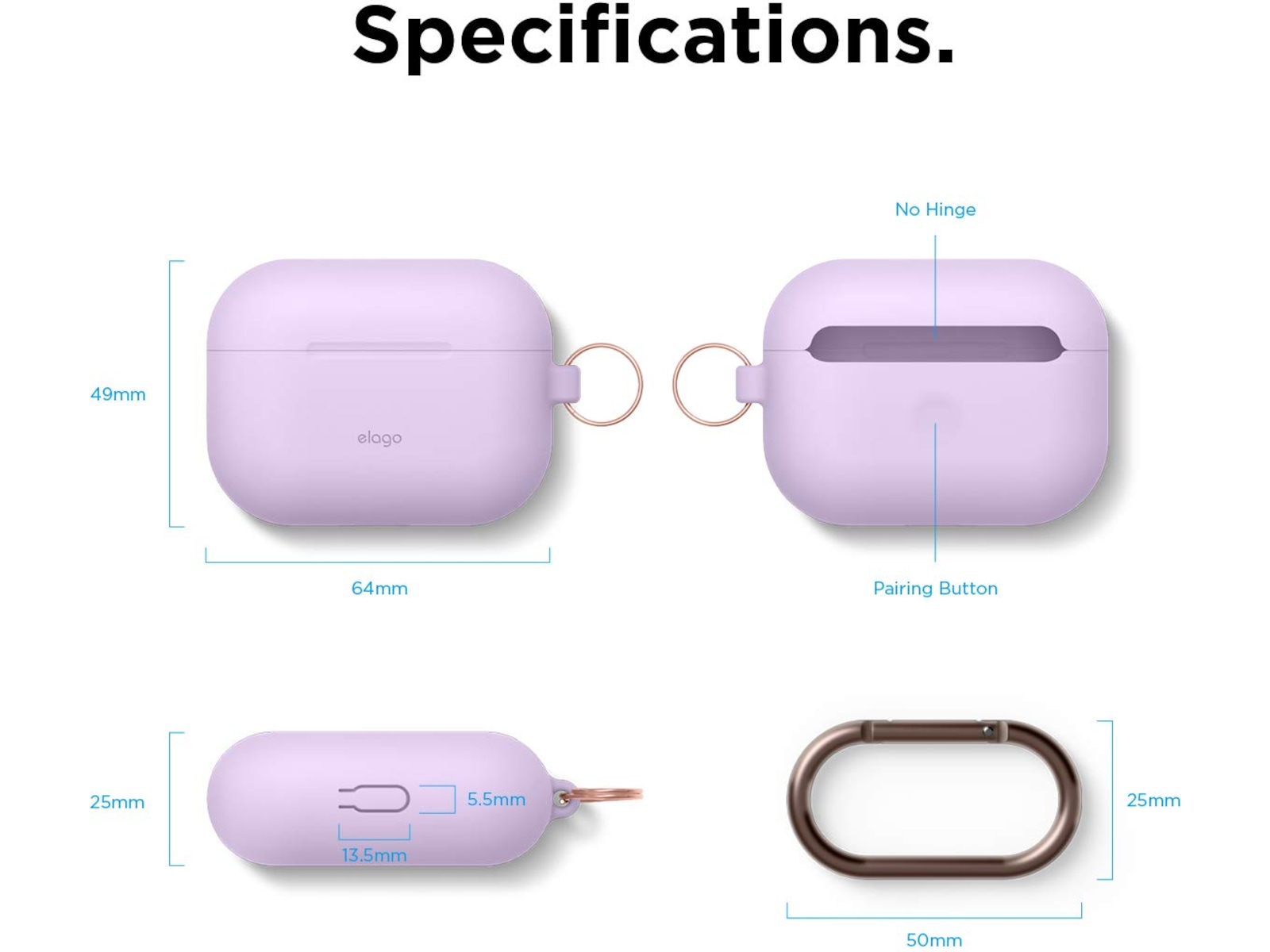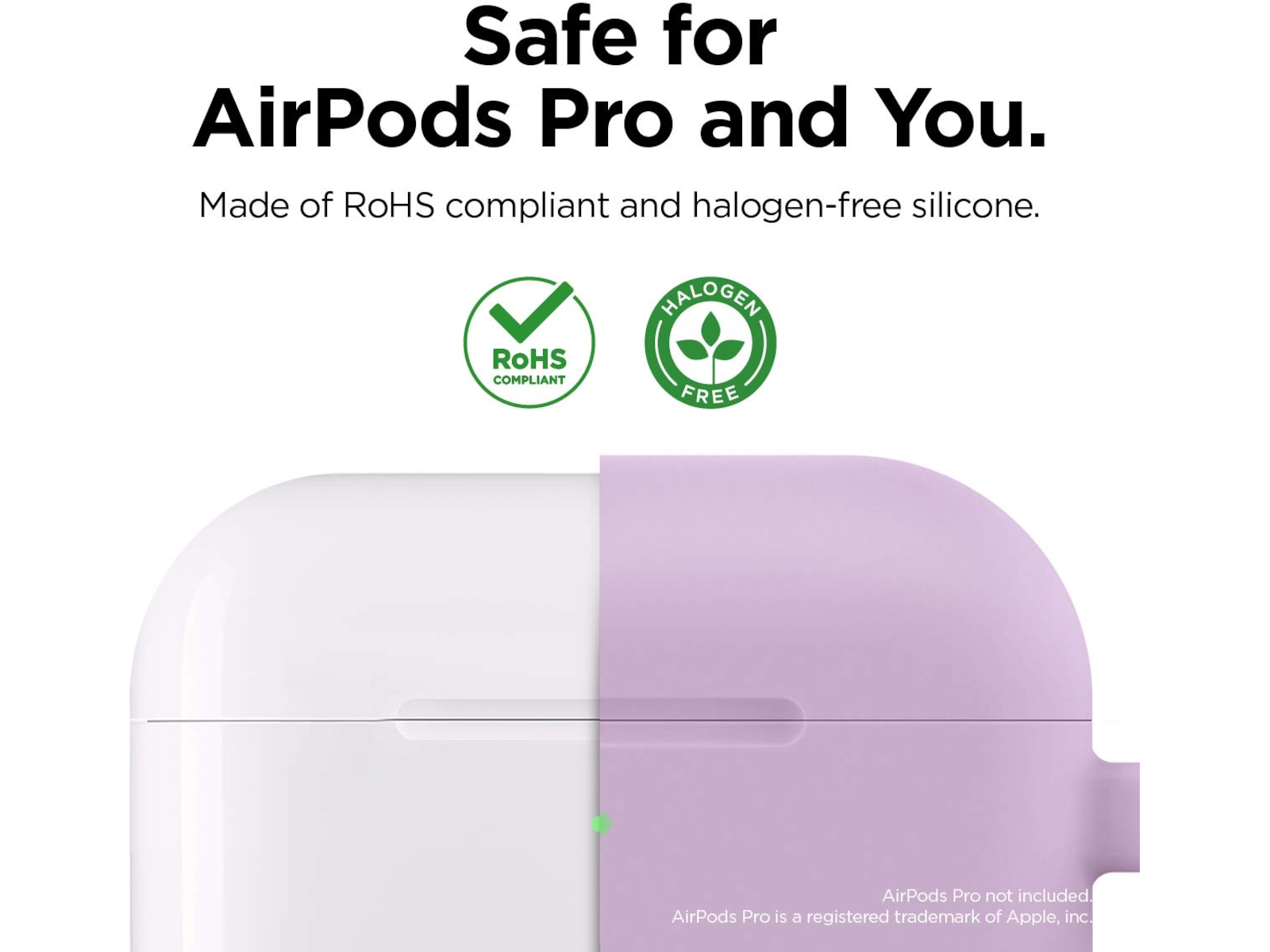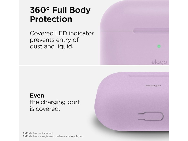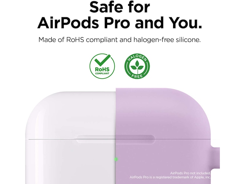 BESKYTTELSE Etuiet er fremstillet af førsteklasses silikonemateriale for at beskytte dit AirPods Pro etui mod ridser og eksterne påvirkninger. Støvhætte beskytter AirPod Pros opladningsport mod støv og væsker. En karabinhage er inkluderet, så du sikkert kan fastgøre dit AirPods etui til bæretasker, kufferter, bukser, osv
