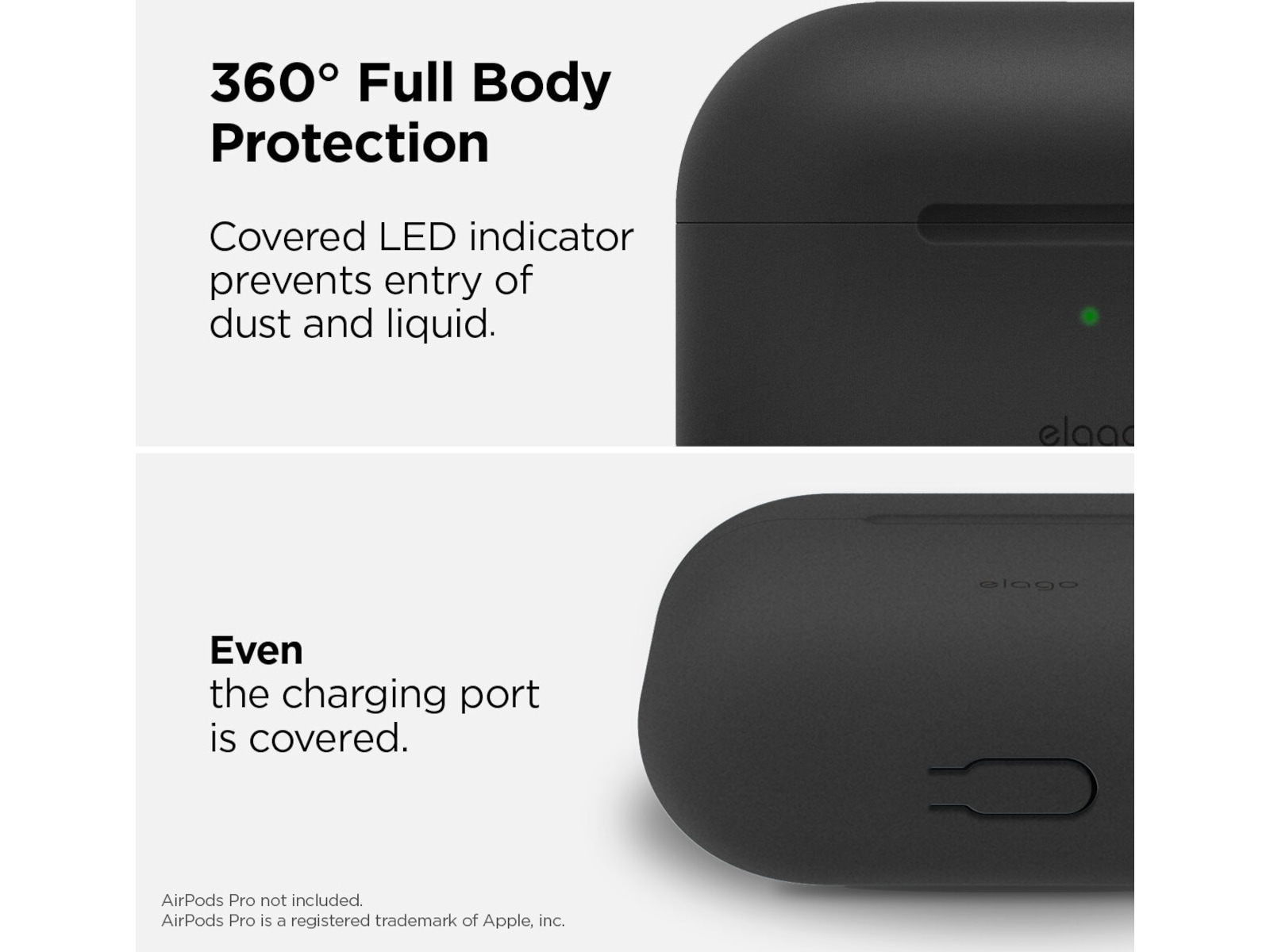 BESKYTTELSE Etuiet er fremstillet af førsteklasses silikonemateriale for at beskytte dit AirPods Pro etui mod ridser og eksterne påvirkninger. Støvhætte beskytter AirPods Pros opladningsport mod støv og væsker.