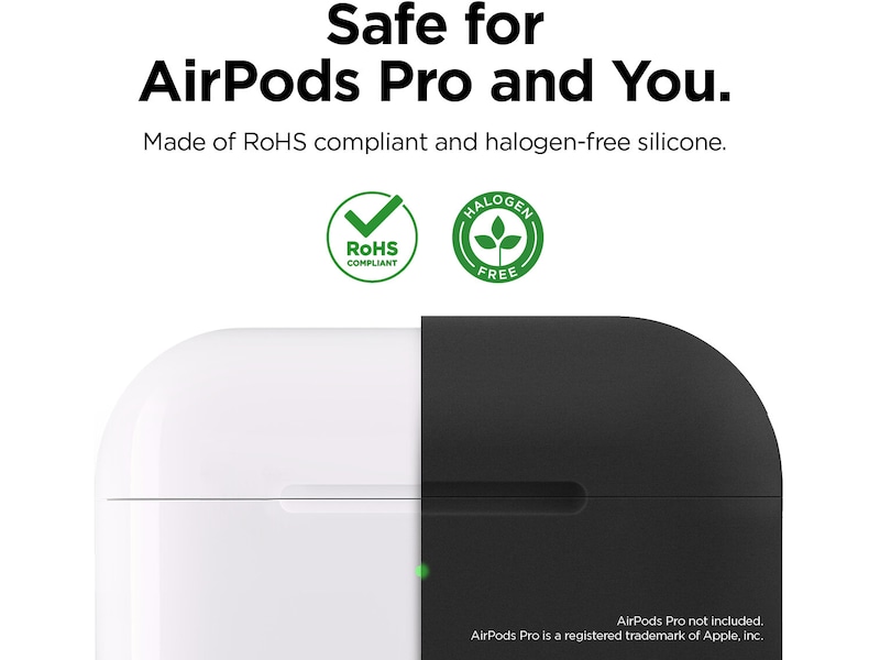 BESKYTTELSE Etuiet er fremstillet af førsteklasses silikonemateriale for at beskytte dit AirPods Pro etui mod ridser og eksterne påvirkninger. Støvhætte beskytter AirPods Pros opladningsport mod støv og væsker.