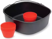 Nu kan du nemt bage boller og cupcakes i Airfryer XXL. Muffinsformene er lavet af lugtfri silikone - et fleksibelt materiale, der tåler høje temperaturer, er hygiejnisk og let at rengøre.