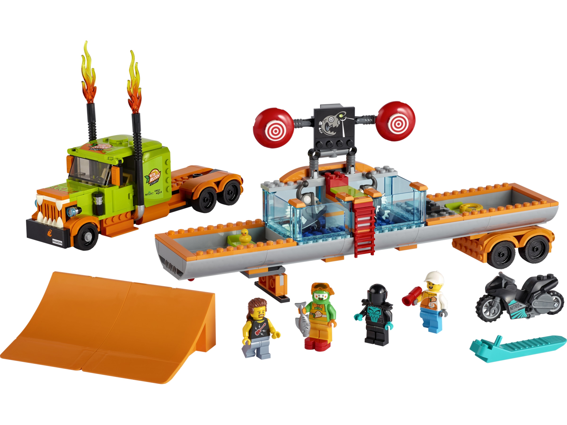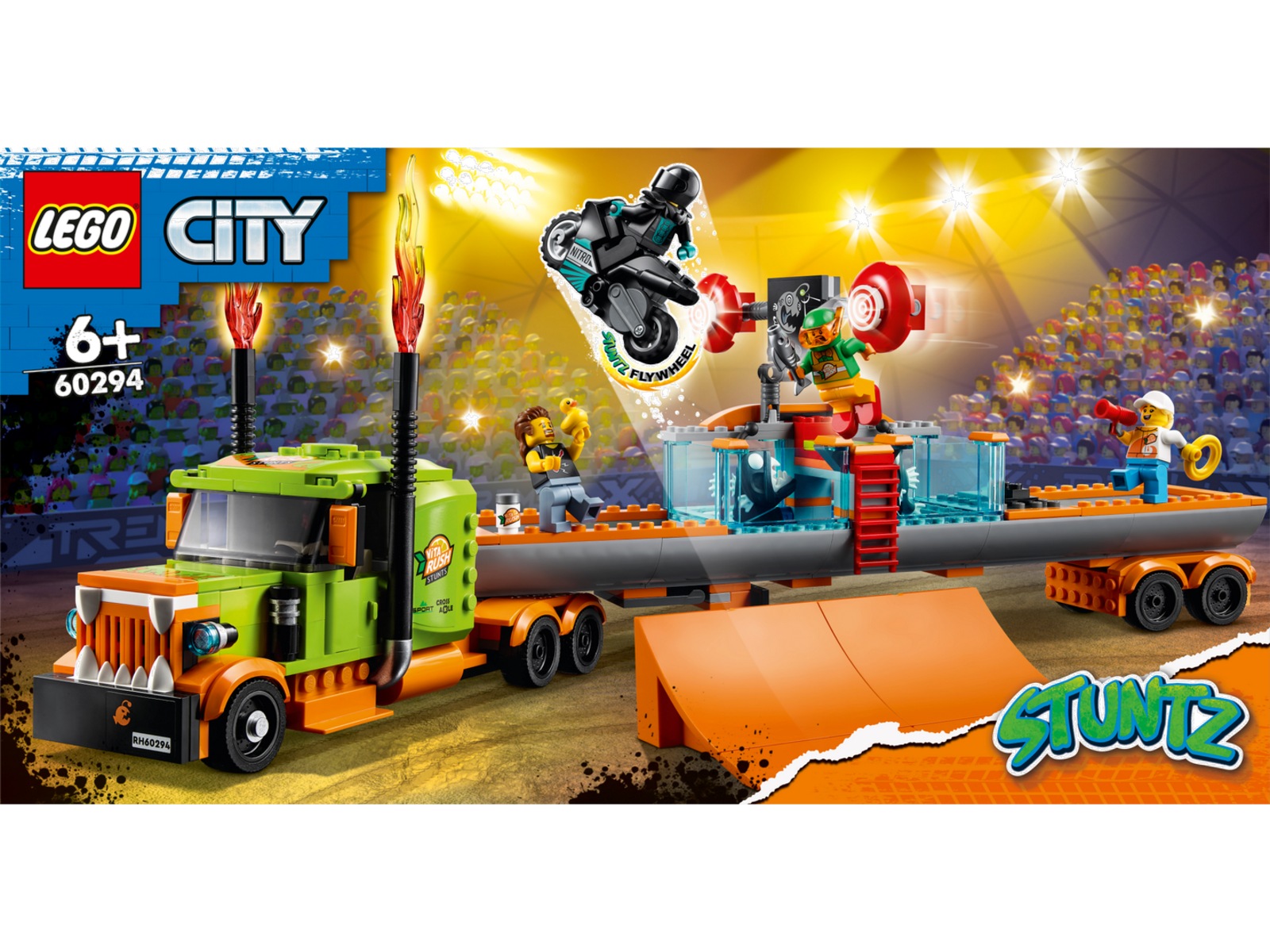 - Sæt scenen for actionfyldt leg med det førsteklasses LEGO® City legesæt Stuntshow-lastbil (60294), der omfatter en svinghjulsdrevet stuntmotorcykel og sjove rekvisitter, som kan bruges til at udføre fantastiske stunts.