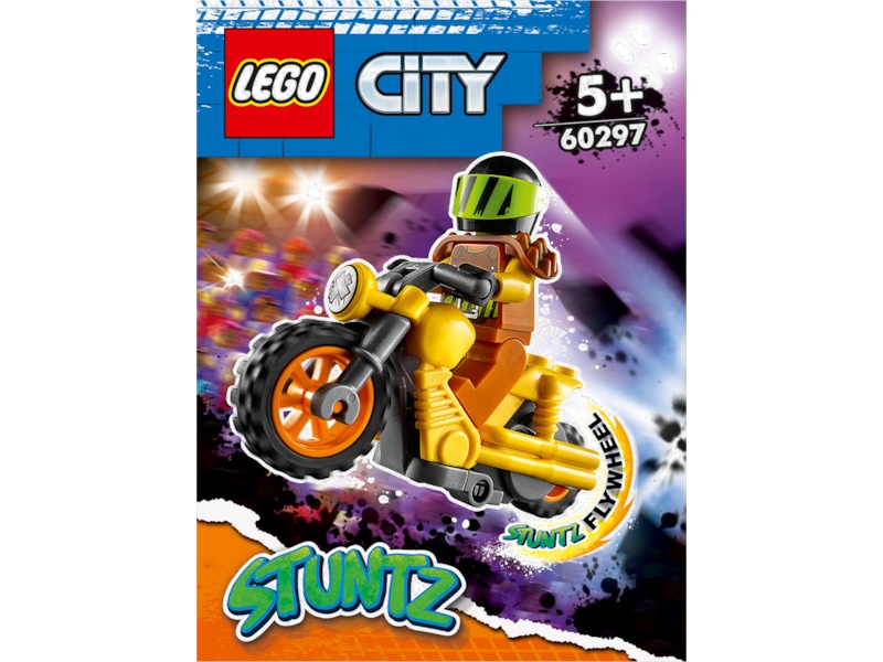 Boost børns leg med det svinghjulsdrevne LEGO® City legesæt Nedrivnings-stuntmotorcykel (60297), der indeholder en lynhurtig stuntmotorcykel og vovehalsen Wallop fra tv-serien LEGO City Adventures – en perfekt kombination, der vil begejstre publikum med et spændende og actionfyldt stuntshow. Sjov for drenge og piger fra 5 årDette LEGO sæt indeholder en trinvis byggevejledning i æsken. Du kan også gå online og downloade Instructions PLUS, en del af appen LEGO Byggevejledninger til smartphones og tablets. Denne interaktive byggeguide med zoom-, dreje- og visningsværktøjer hjælper spirende byggere med at blive mesterbyggere.Gør børn til showets stjerner!LEGO City Stuntz-sæt gør børn til hovedpersoner i handlingen med svinghjulsdrevne motorcykler, seje køretøjer, realistiske rammer og sjove figurer, der stimulerer til fantasifuld leg baseret på virkeligheden. Kombiner sættene fra LEGO® City Stuntz-sortimentet for at lave endnu større og iøjnefaldende stuntshows!