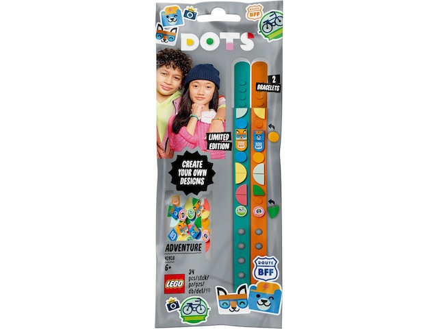 - Giv en ung designer en sjov oplevelse med at lave venskabsarmbånd med LEGO DOTS sættet Eventyr-armbånd (41918), der findes i begrænset oplag, og som indeholder 2 justerbare remme og 32 mosaikker