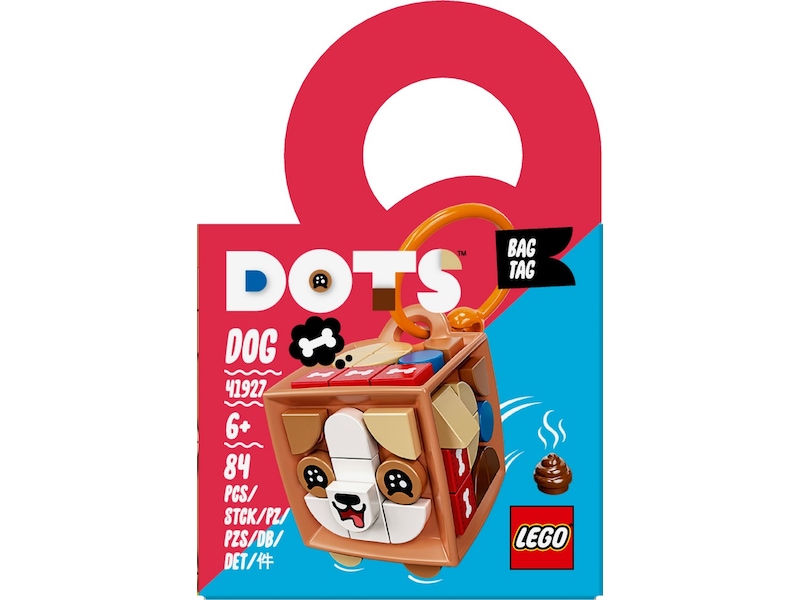 Forkæl en designfan med det bedårende LEGO DOTS sæt Taskevedhæng - hund (41927)!