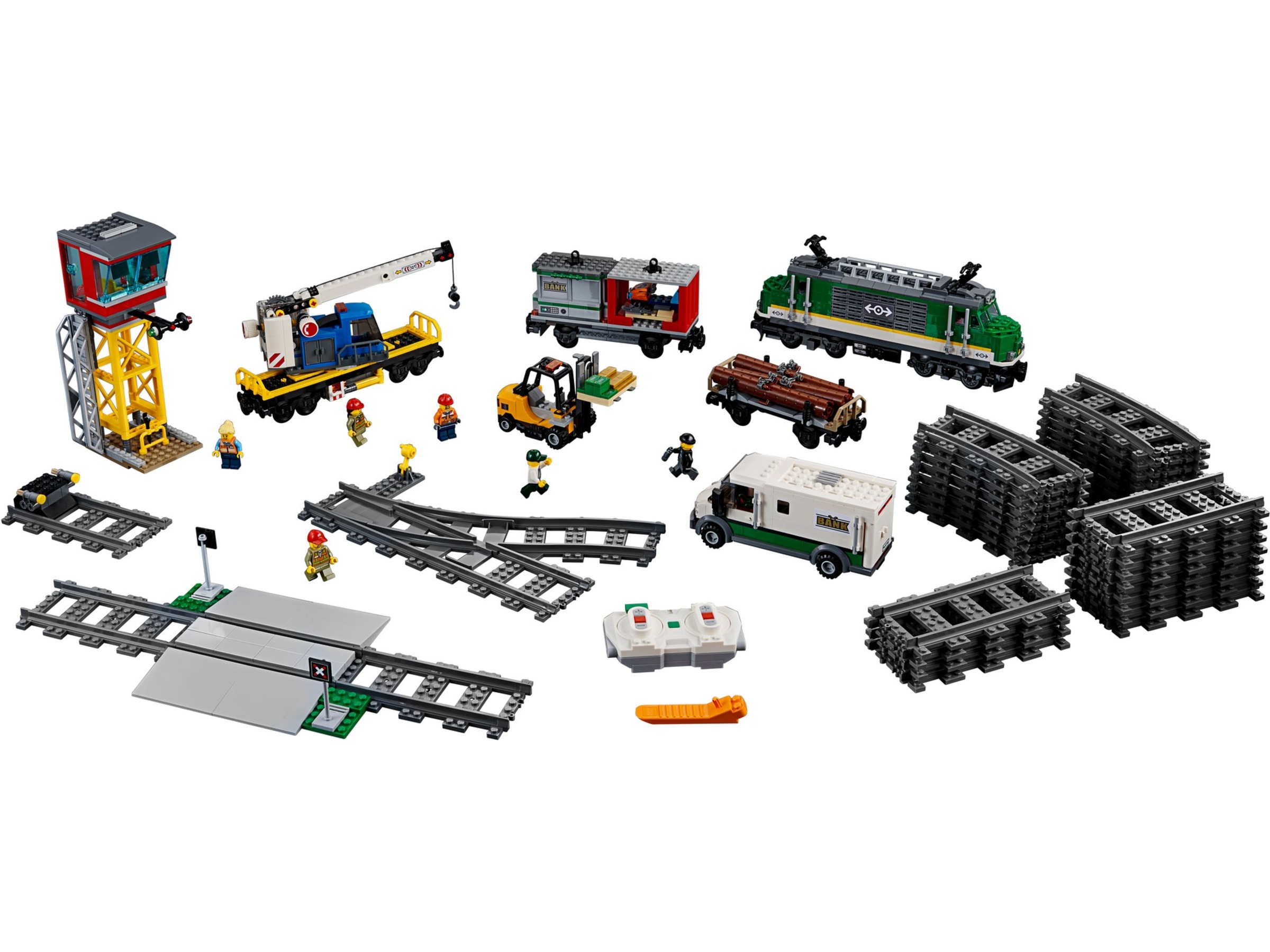 | Dimensioner & vægt detaljer | Kontrolcenter: 8 cm x 12 cm x 21 cm, Godstog: 6 cm x 82 cm x 11 cm, Gaffeltruck: 5 cm x 12 cm x 7 cm, Armeret lastbil: 6 cm x 15 cm x 6 cm |