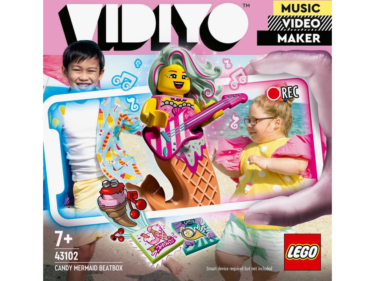 - Inspirer børn til at instruere og optræde i deres egne musikvideoer med sættet LEGO VIDIYO Candy Mermaid BeatBox (43102)