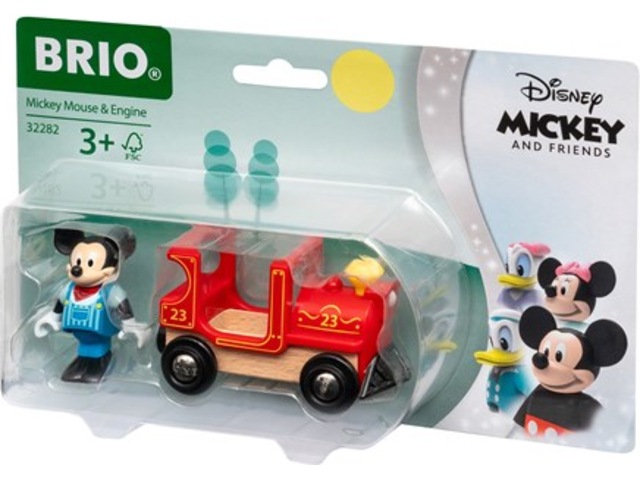 32282 Mickey Mouse og lokomotiv passer til alle BRIO togbaner og inkluderer en Mickey Mouse figur i lokomotivføreruniform.