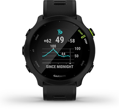 Når du er på farten, registrerer Forerunner 55 skridt, intensitetsminutter med mere.