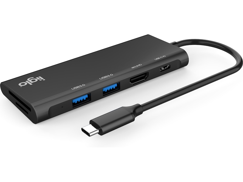 iiglo 6-i-1-hubben er kompatibel med Windows 10/8/7/XP, Apple Mac OS 10.2.8 og nyere, samt Linux. Den kan tilsluttes din enhed via dens 15 cm USB Type C 3.1-kabel.
