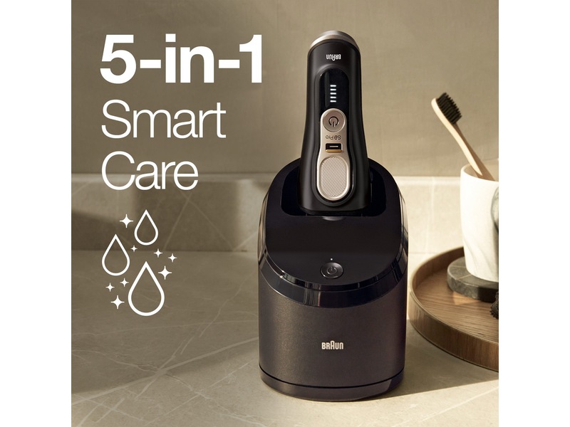 De unikke skæreblade fra Braun skærer håret under 0,05 mm, og AutoSense-teknologien tilpasser shaverens styrke efter skæggets tæthed, så du altid får en glat barbering.