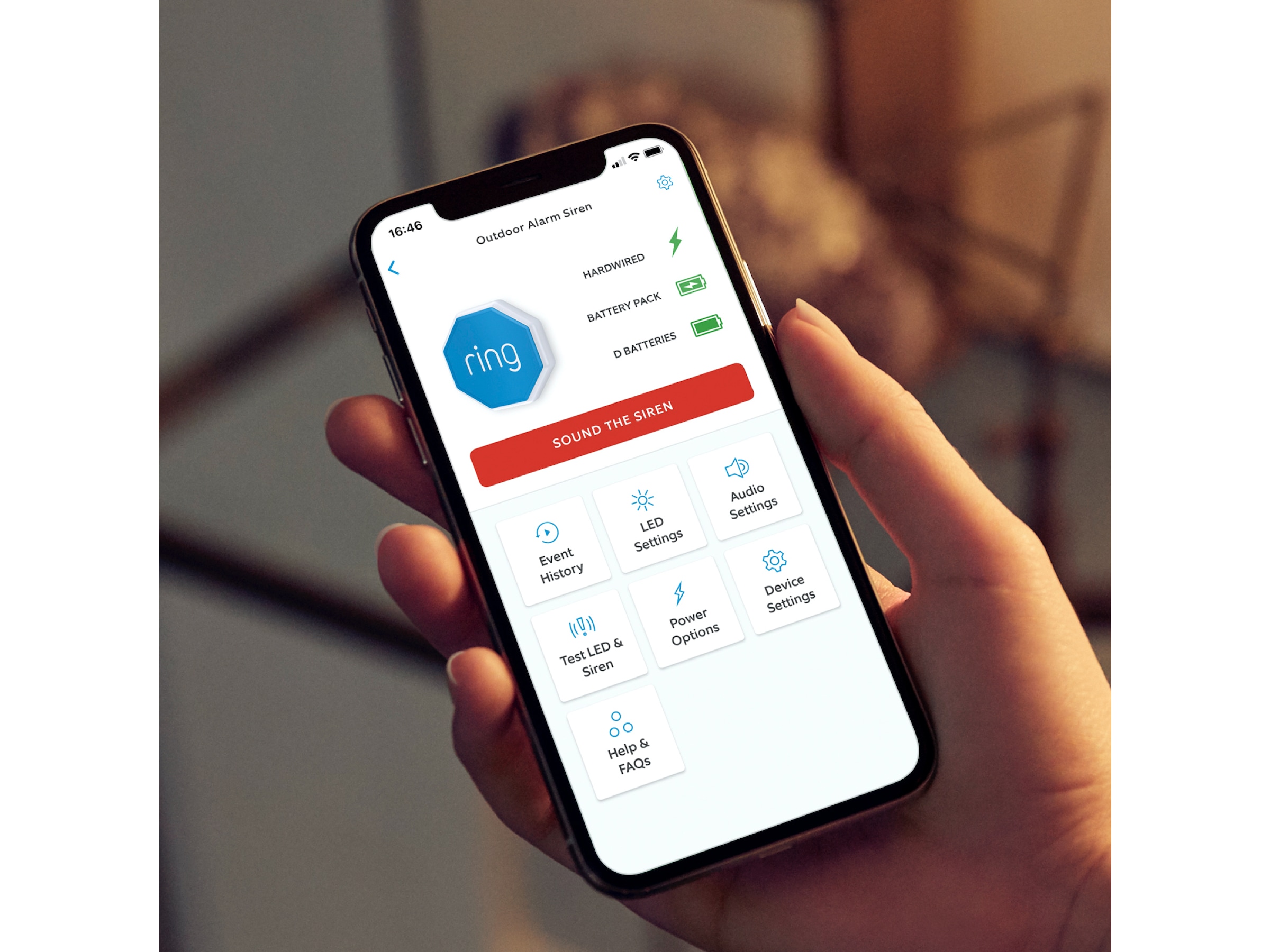 - Med Dusk to Dawn-funktionen kan Ring Alarm Outdoor Siren bruges som en sikkerhedsadvarsel døgnet rundt