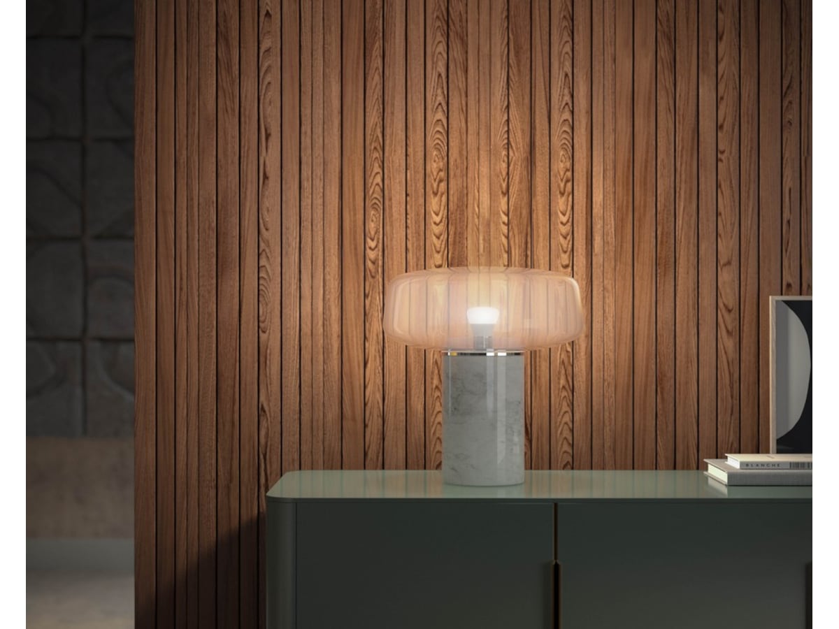 Hue pærer og lamper giver et blødt hvidt lys.