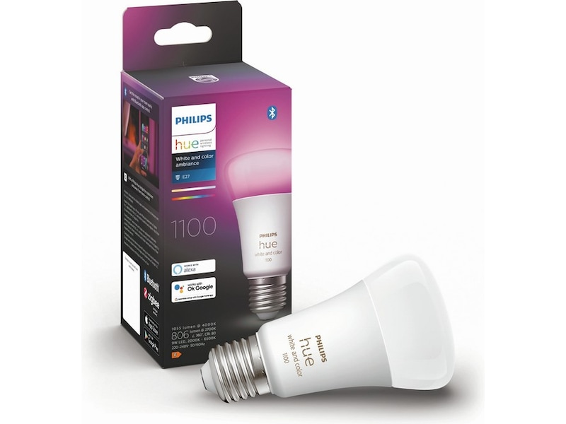 Denne 1-pak indeholder én Philips Hue White and color ambiance LED pære med E27 fatning.