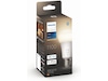 Denne Philips Hue White 1-pak indeholder én LED pære med E27 fatning. White serien af lyskilder giver lys ved 2700 grader kelvin, og de gør det muligt for dig at dæmpe din belysning.