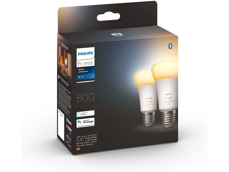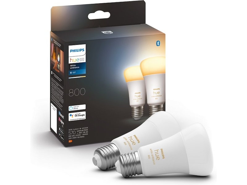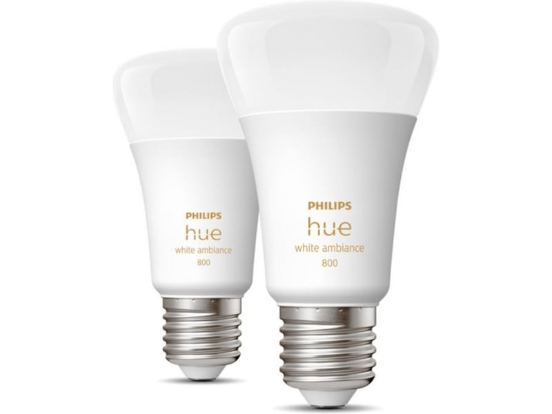 Denne 2-pak indeholder to Philips Hue White ambiance pærer med E27 fatning. Med White ambiance er det muligt at tilpasse din belysning til alle de daglige rutiner i dit hjem.