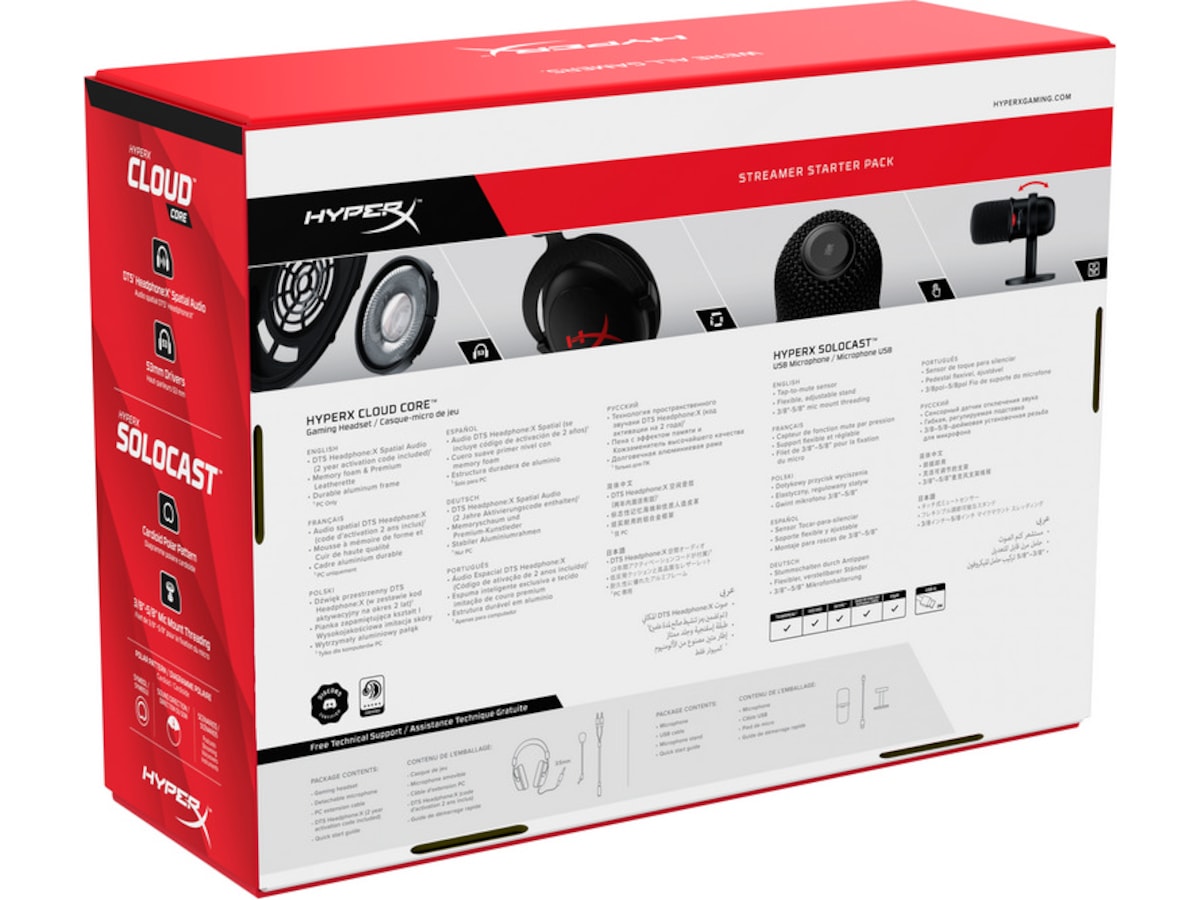 HyperX Streamer Starter Pack er en bundle til kommende streamere, som er ivrige efter at komme i gang med at skabe indhold til deres fremtidige fans. Vi ved, at vejen til at blive en indholdsskaber på fuld tid kan være lang, og derfor er HyperX Cloud Core designet med tanke på komfort. Behageligt memory foam og blødt, førsteklasses kunstlæder er komfortabelt for ørerne – selv under lange gamingsessioner. Denne bundle indeholder også HyperX Solocast, en USB-kondensatormikrofon med flere smarte funktioner, f.eks. den praktiske trykknapsensor til frakobling af mikrofon samt en drejelig fod, som kan tilpasses mange forskellige opsætninger. En fantastisk gave til streamere, som sidder klar til at tage på en rejse mod streamingberømmelse.