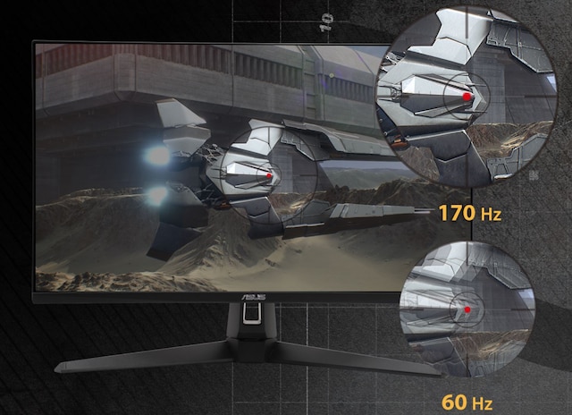 En imponerende opdateringshastighed på 170Hz (overclocking) fjerner forsinkelse og bevægelsesudviskning og giver dig fordelene i first person skydespil, racing-spil, real-time strategi og sportstitler. Denne ultrahurtige opdateringshastighed giver dig mulighed for at spille med de højeste visuelle indstillinger og reagere øjeblikkeligt på, hvad der er på skærmen.