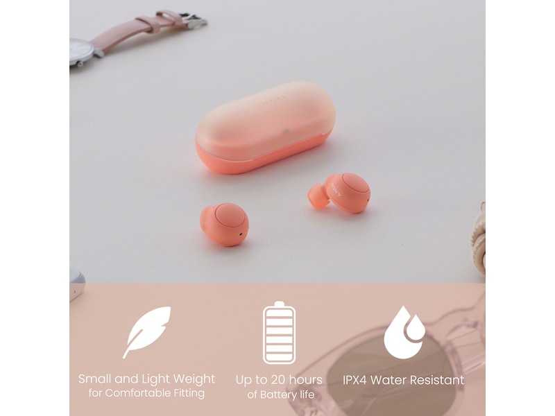 Med et lille og let design passer disse Sony hovedtelefoner dine ører perfekt. Med IPX4 er de også beskyttet over for vanddråber. Den runde form uden kanter gør dem meget behagelige og lader dig fokusere på det vigtigste – musikken.