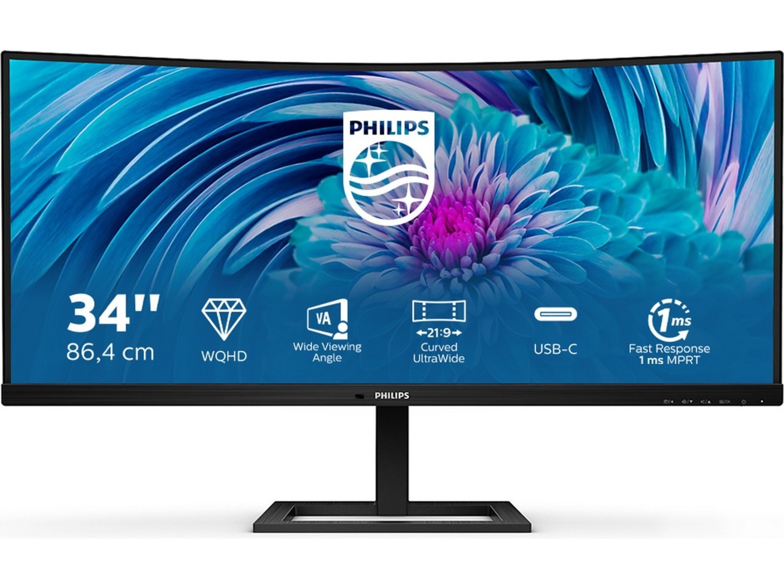 Den buede Philips E line UltraWide-skærm viser imponerende panoramabilleder. En WQHD-skærm med en ergonomisk stander giver optimale visningsforhold. Alt-i-én USB-C og MultiView opfylder behovet for produktivitet.