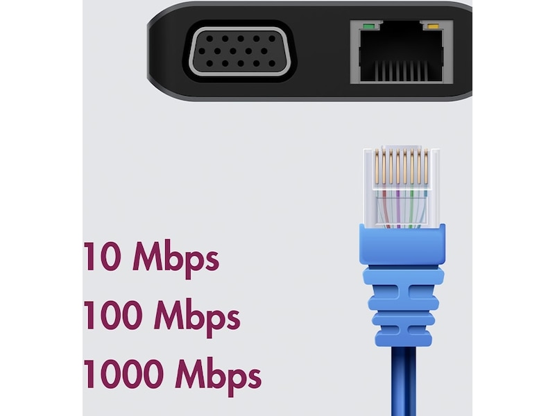 - Vanvittigt hurtigt: Dockingstationens USB 3.0-porte muliggør dataoverførselshastigheder på op til 5 Gbps. Med LAN-grænsefladen (RJ45) kan du også surfe på internettet med høj hastighed
