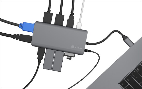 Med to HDMI®- og en VGA-tilslutning giver IB-DK4070-CPD op til tre videogrænseflader med forskellige opløsninger, hvilket muliggør samtidig tilslutning af HDMI®- og VGA-skærmenheder i udvidelsestilstand. Dette er gjort muligt ved at kombinere flere aktuelle teknologier såsom DisplayLink™ og DisplayPort™ Alt Mode.