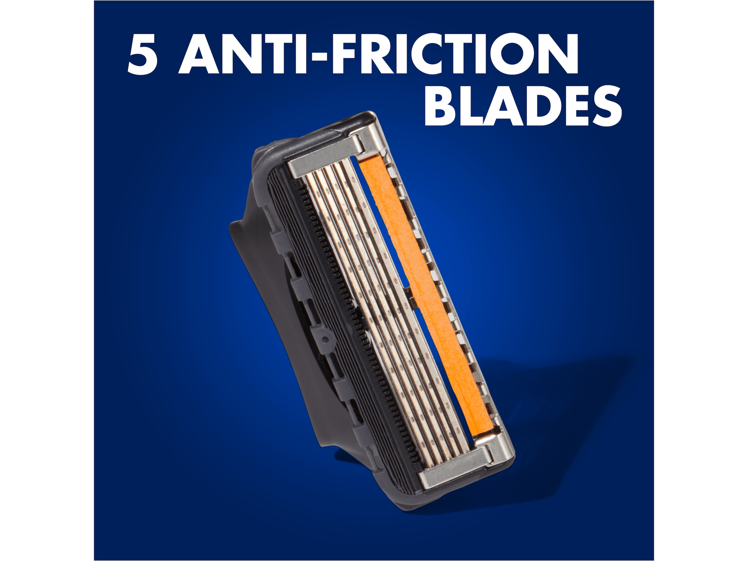 - Fem antifriktionsblade, som giver en tæt barbering, der holder længe