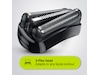 De 3 bevægelige barberelementer (3-Flex-hoved) tilpasser sig enhver ansigtskontur for maksimal hudkontakt. Bevist selv på vanskelige 3-dages skæg.