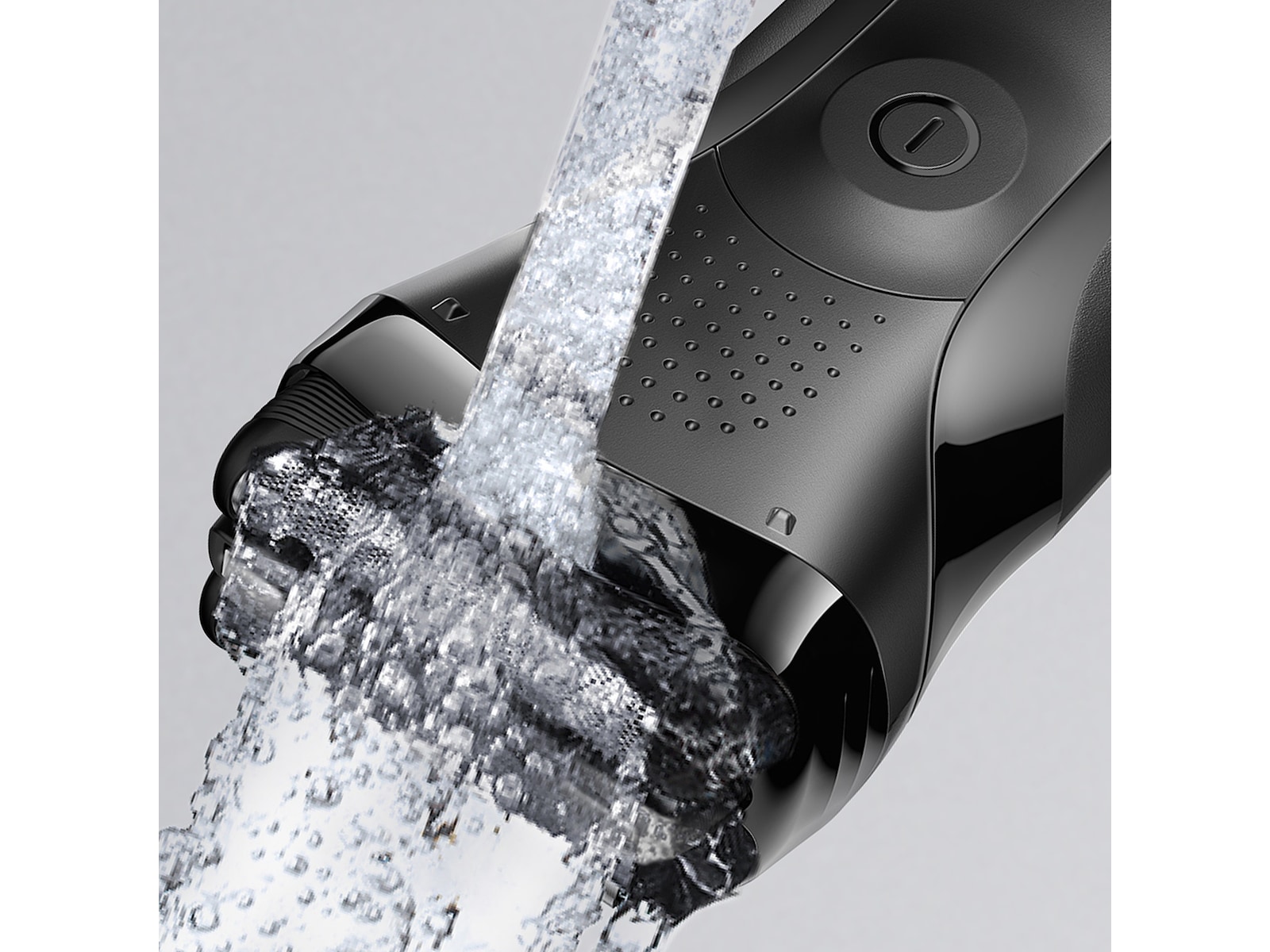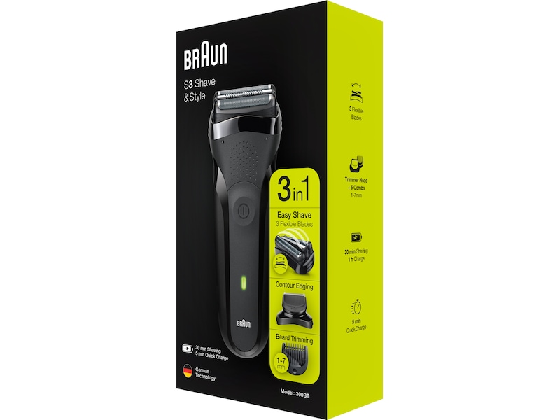 - Slidstærk ledningsfri barbermaskine og skægtrimmer. Designet og konstrueret i Tyskland af Braun.