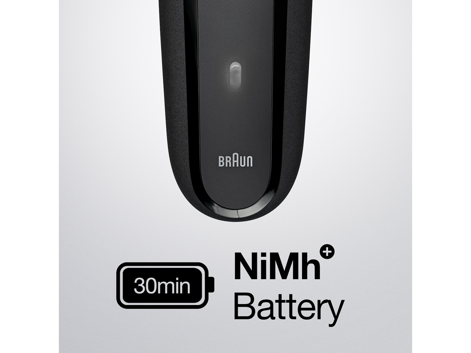 Serie 3 barbermaskiner er genopladelige. Fuld opladning på 1 time til 30 minutters barberingstid. En 5 min. hurtig-opladning er nok til en barbering.