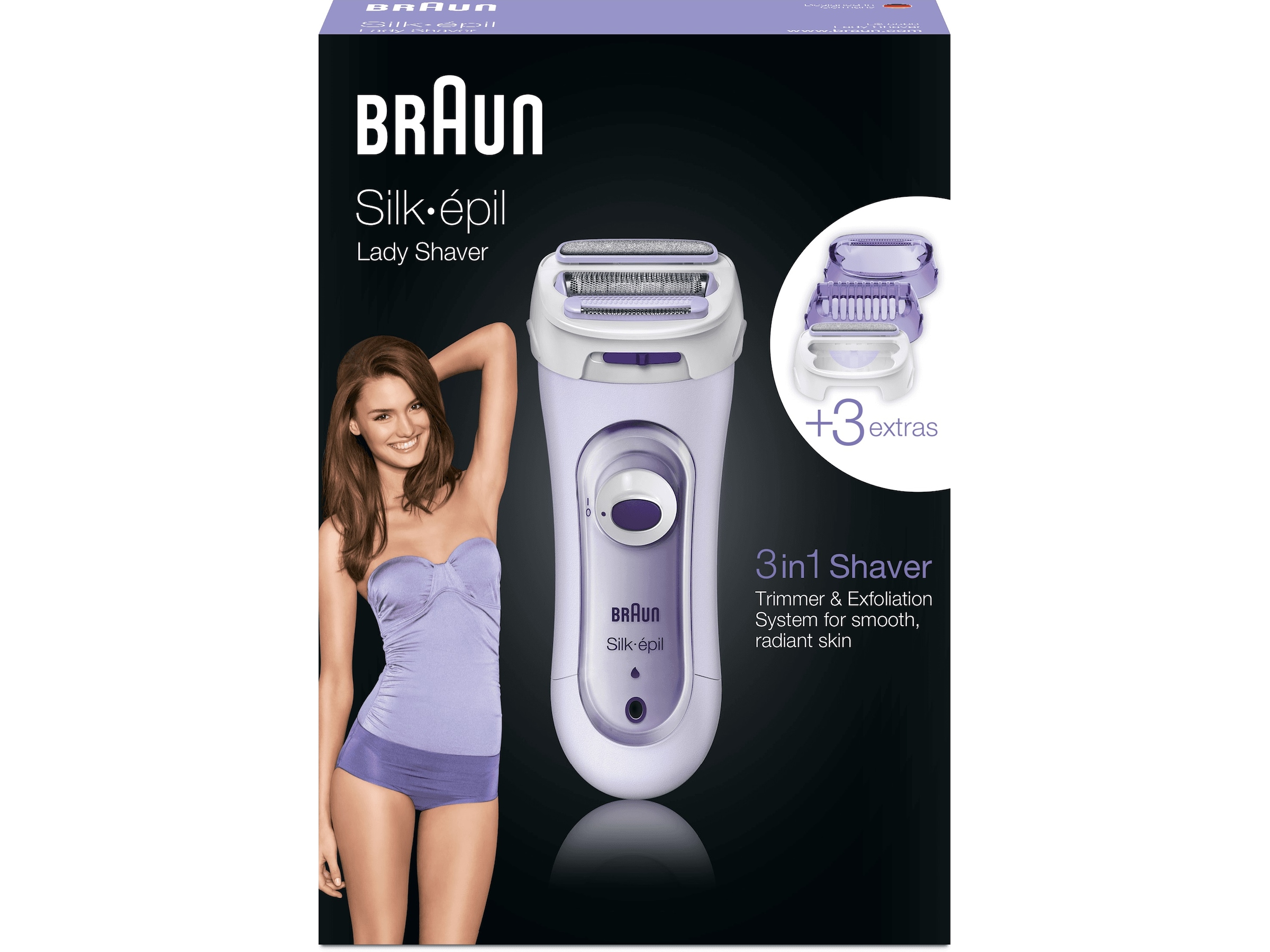 Braun Silk-épil Lady Shaver 5-560 Lila – 3-i-1 Ledningsfri Elektrisk Shaver, Trimmer Og Eksfolieringssystem