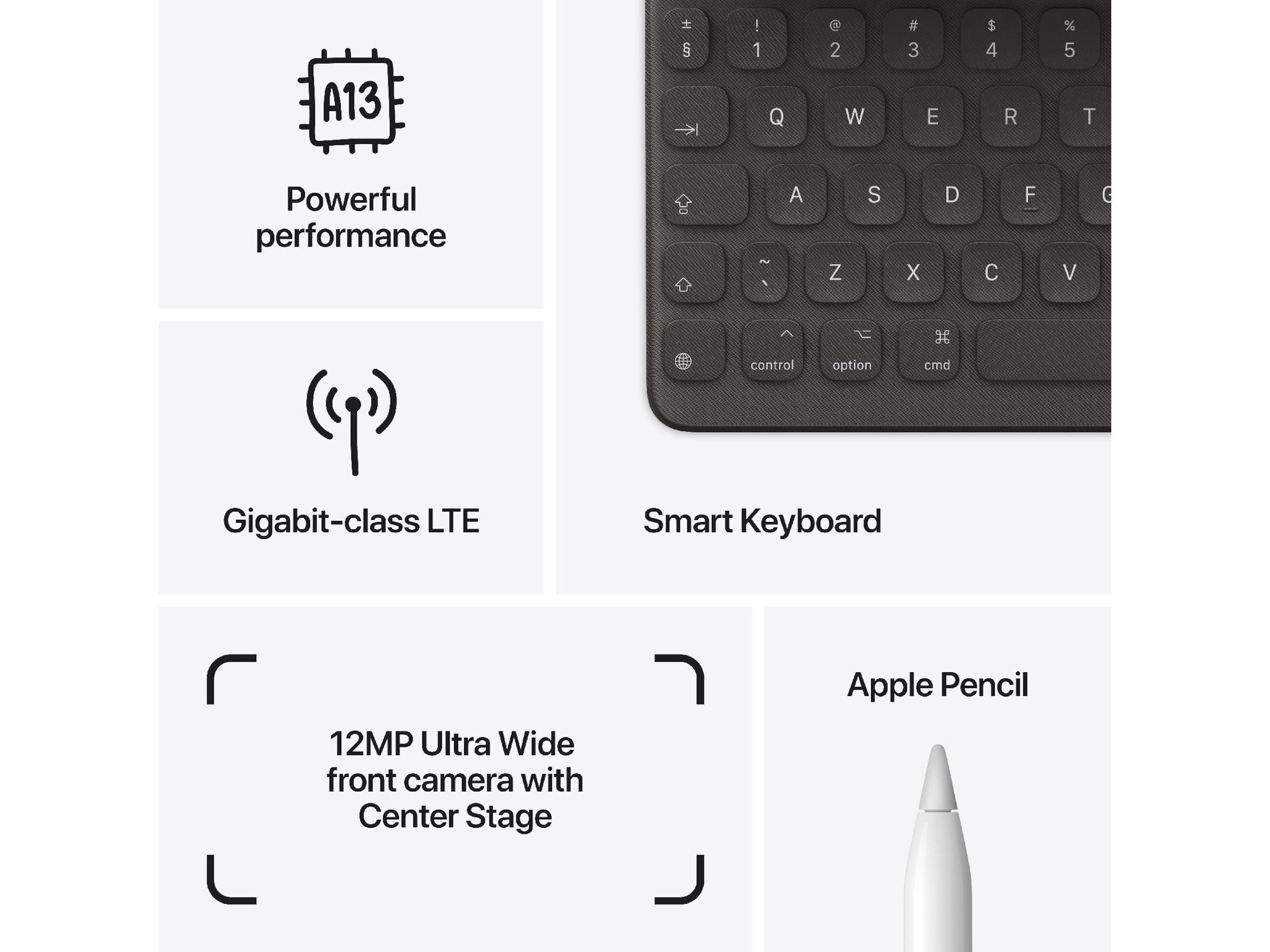 Kraftfuld. Let at bruge. Alsidig. Den nye iPad har en fantastisk 10,2-tommer Retina-skærm, en kraftig A13 Bionic-chip, ultravidvinkel og fokuseret frontkamera, og den fungerer med Apple Pencil og Smart-tastaturet.¹
