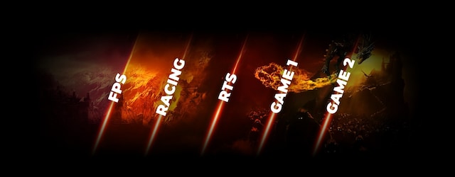 Tilpas dit display til spillet med et klik på en knap. Skift indstillinger mellem indbyggede forudindstillinger til FPS-, racer- eller RTS-spil, eller skab dine egne ideelle betingelser og gem dem. Tastaturet til AOC-indstillinger gør det nemt og hurtigt at skifte profil eller justere funktioner.