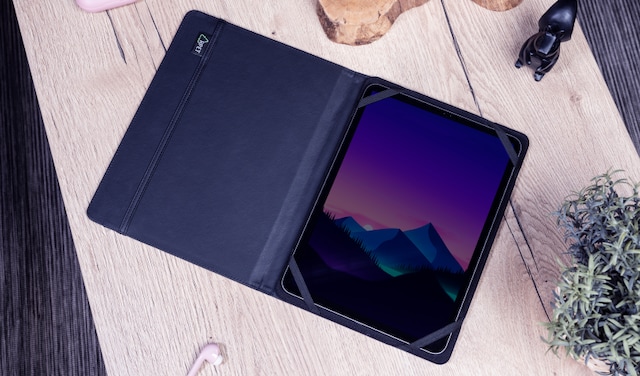 Folde-coveret holder begge sider af din enhed beskyttet udefra, mens den bløde inderside beskytter din skærm på indersiden. Den elastiske lukningsrem sørger for, at din tablet sidder godt fast.