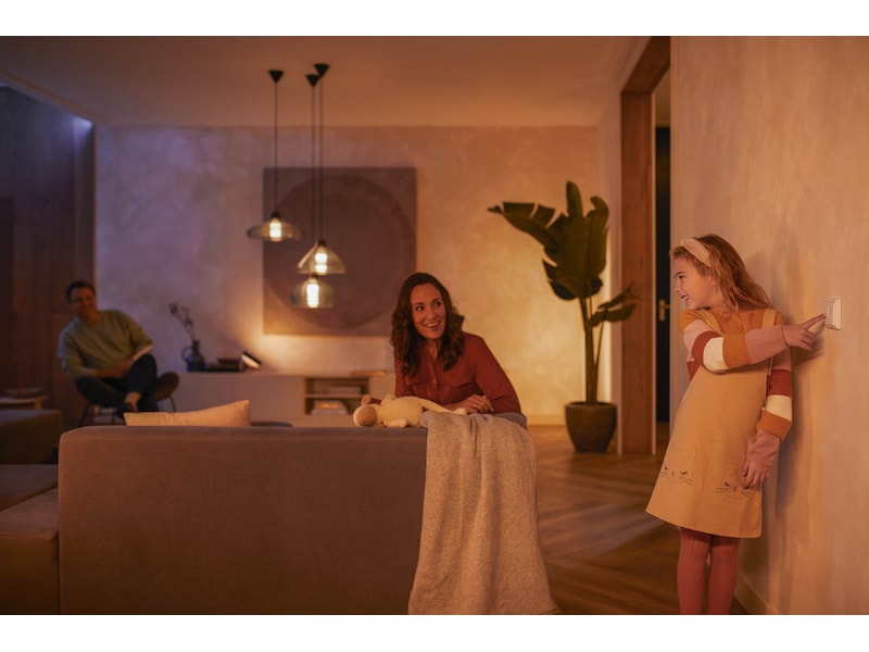 Modulet forbindes som tilbehør til din Hue Bridge i Hue appen, og herefter har du altid forbindelse til dine Hue lamper. Med Hue Wall switch modulet vil dine Hue lamper altid være tændte og tilgængelige, også selvom du slukker på vægkontakten. Modulet tillader dig også at skifte mellem forskellige lysscener via din almindelige vægkontakt, så du nemt kan tilpasse din belysning til din hverdag og aktiviteterne i dit hjem. Denne pakke indeholder ét Wall switch module.