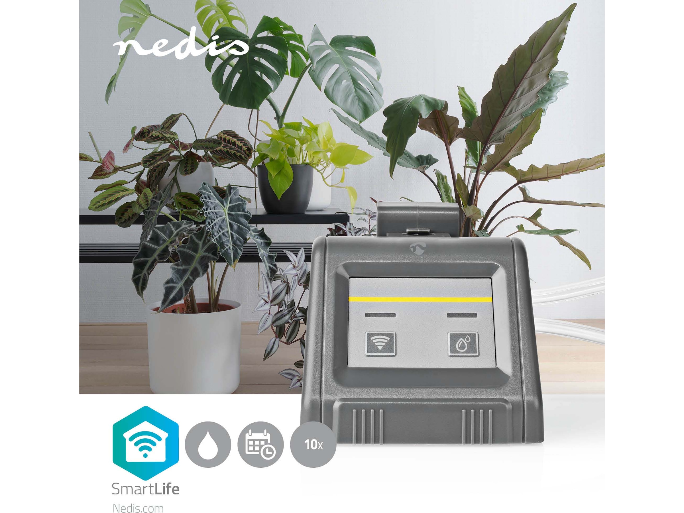 Takket være det praktiske kunstvandingssystem behøver du aldrig mere bekymre dig om døde eller svage planter, selv når du er på ferie. Bare indstil en tidsplan via Nedis SmartLife-appen, og glæd dig over friske og grønne planter.