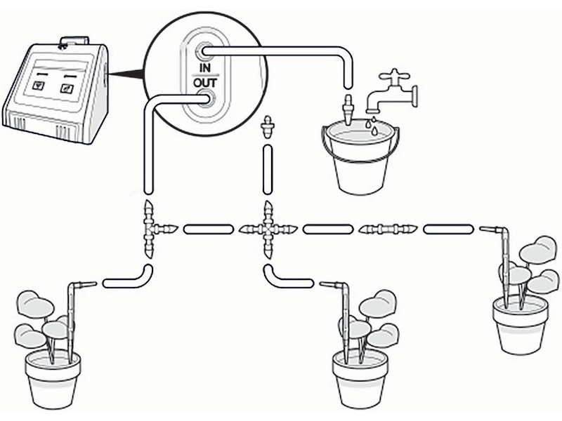 Placer Nedis SmartLife-vandpumpen i nærheden af planterne, skær og brug de medfølgende 10 meter rør med alt tilbehøret for at nå alle de nødvendige planter samt en vandtank efter eget valg: spand, flaske eller vandkande.